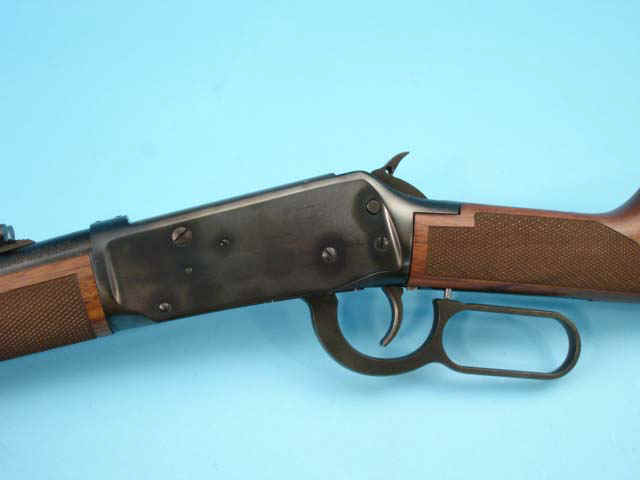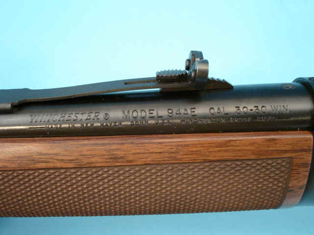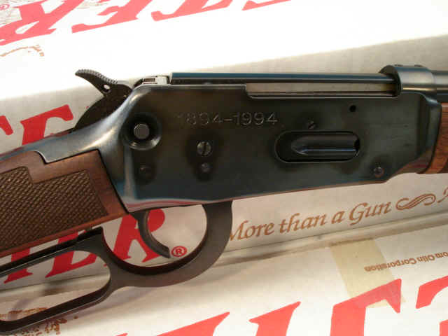 elevation rear sights. Blued finish. Right side of frames marked: 1894-1994. Checkered