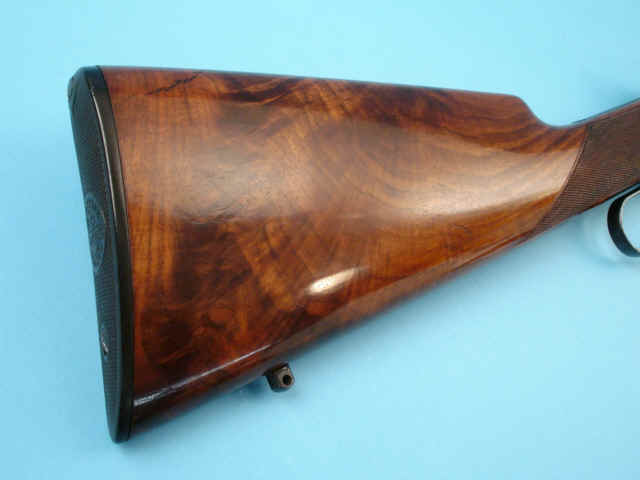 markings; buckhorn leaf rear sight; hooded bead front sight, deluxe wood stock and forend;