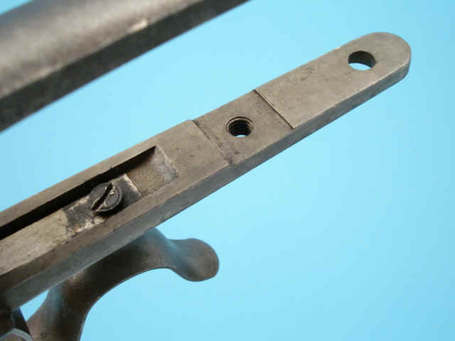 Condition: Very good. Metal with grey patina and scattered light pitting. Holes filled on tang. No hammer spring included.
