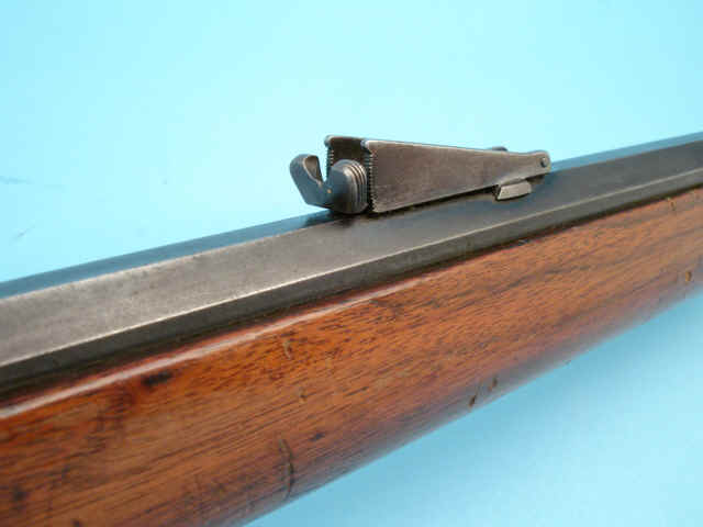 target peep sight, factory rear sight dovetail fitted with Redfield spacer. Blued finish.
