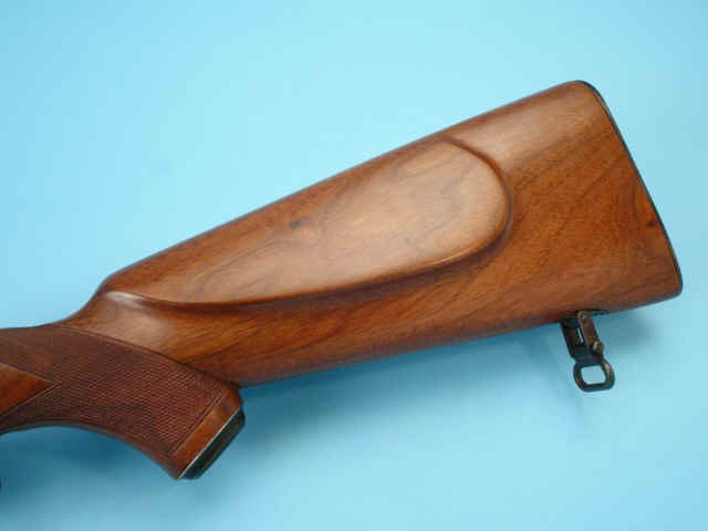 walnut. Stock with black bake-lite grip cap and fore-end tip. Cheekpiece. Sling swivels.